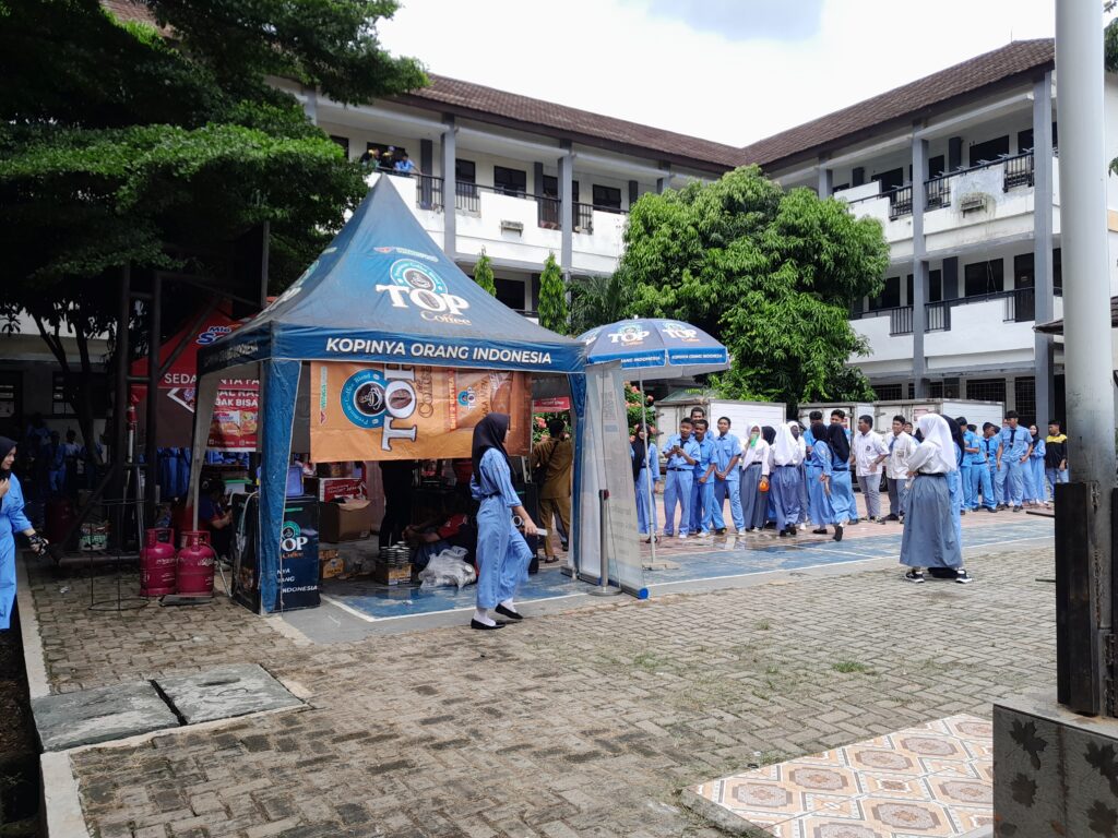 Selain pembagian mie, kegiatan ini juga menampilkan stan promosi dari Top Coffee yang memberikan informasi produk serta hadiah menarik bagi peserta yang berinteraksi di lokasi. Suasana keceriaan tampak jelas dari wajah para siswa yang ikut berpartisipasi.