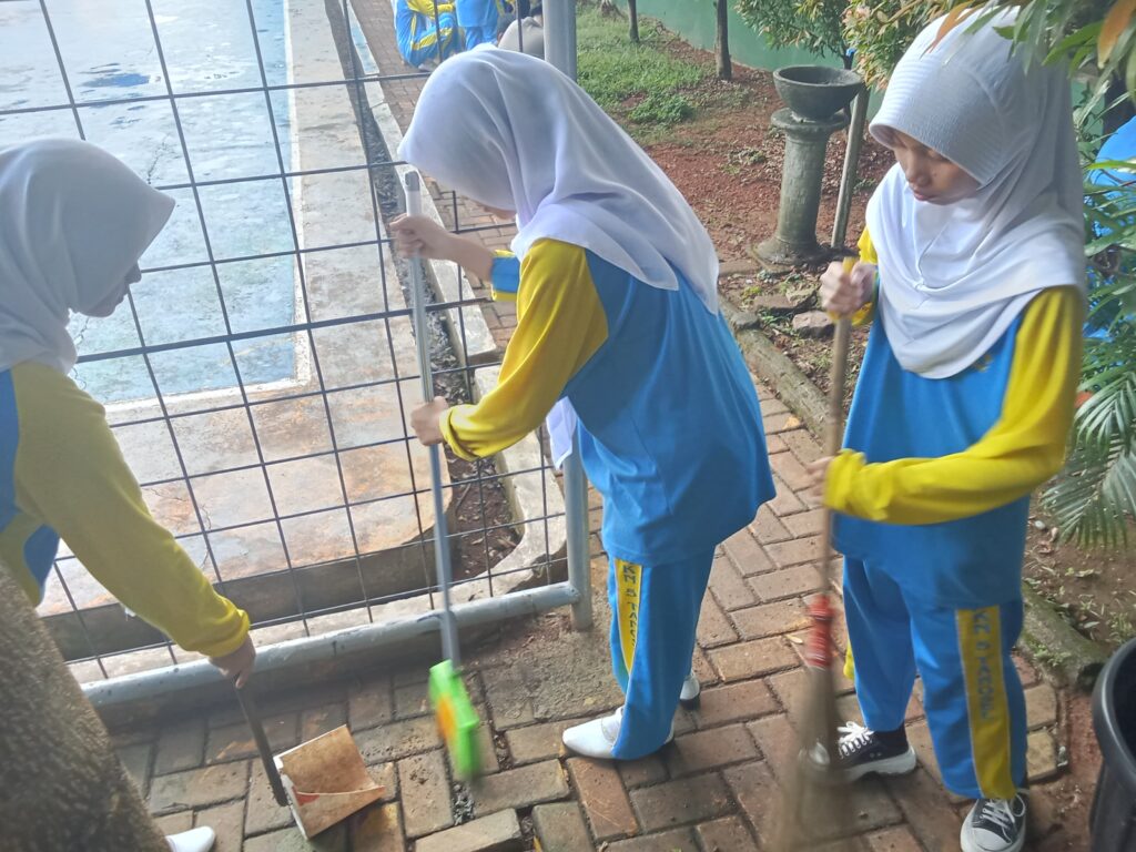 - Area Luar: Siswa-siswi juga membersihkan selokan, memungut sampah di halaman, dan merapikan tanaman di area taman sekolah.